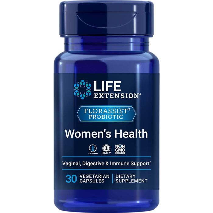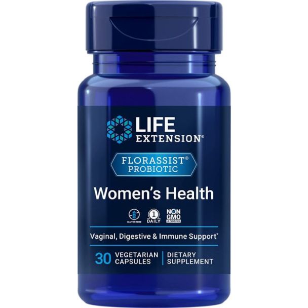 en-free, non-GMO. Trusted GMP-certified quality for women’s daily wellness.Life Extension Florassist Probiotic Womens Health is formulated with two clinically studied probiotic strains, Lactobacillus helveticus LAFTI L10 and Lactobacillus plantarum ROSELL A, delivering 25 billion CFU per serving to support womens digestive and vaginal health. This vegetarian capsule promotes a healthy microbiome balance, supports immune function, and enhances overall well-being. The product is manufactured to high-quality GMP standards, ensuring purity and potency in every dose.