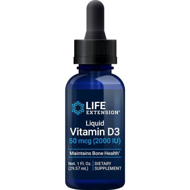 Life Extension Liquid Vitamin D3 50 mcg (2,000 IU) supports bone density, calcium absorption, and immunity. Convenient liquid format with dropper, enhanced with coconut MCT oil for superior absorption.
