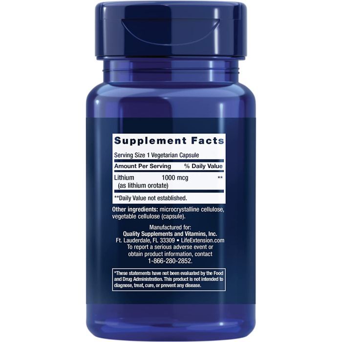 | Life Extension | Lithium 1000 mcg – Brain Health Support | 1 Vegetarian Capsule | Capsule | 100 Capsules |