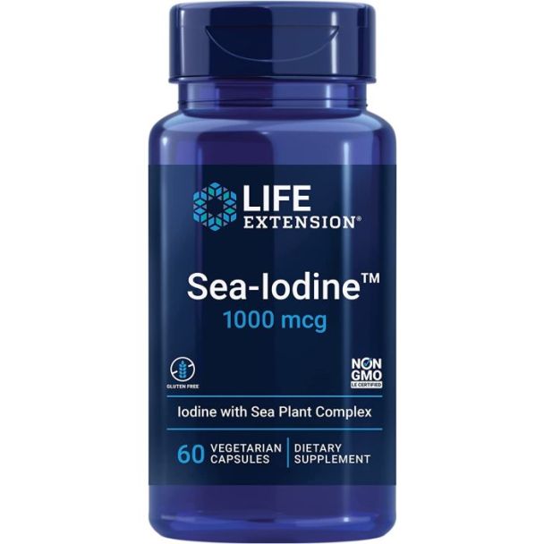 Life Extension Sea Iodine 1000 mcg Salt-Free provides natural iodine from kelp extract to support thyroid health and metabolism in 60 vegetarian capsules.