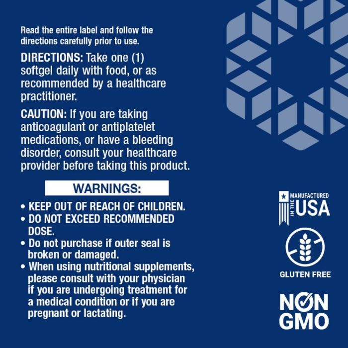 Take one (1) softgel daily with food for optimal absorption. Always consume with a meal containing fat to enhance bioavailability of Vitamin E.
