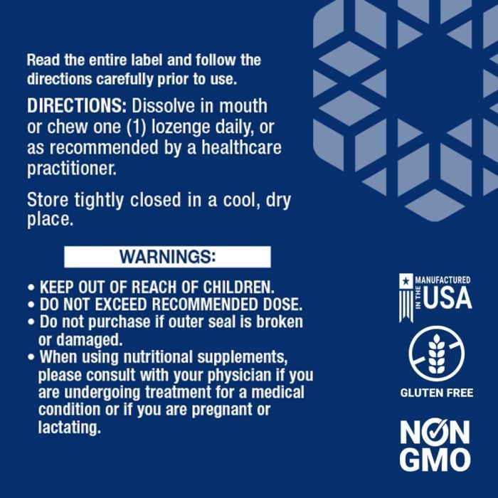 Dissolve 1 lozenge daily under the tongue or as recommended by your healthcare provider. The sublingual delivery ensures rapid absorption into the bloodstream.