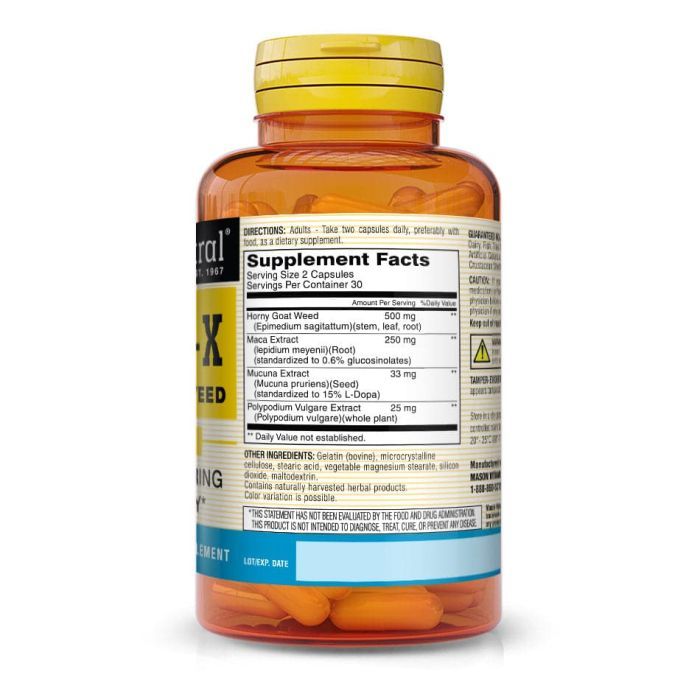 Enhance your vitality with Mason Natural Desire-X Libido Booster. This herbal supplement combines Horny Goat Weed, Maca, Mucuna, and Polypodium Vulgare to support sexual health, energy, and overall well-being.