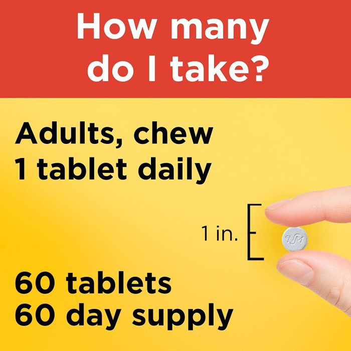 A: Adults should chew 1 tablet daily with a meal and water.