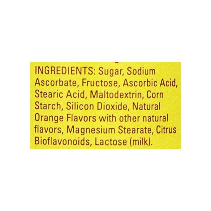 | Sugar, Fructose, Stearic Acid, Maltodextrin, Silicon Dioxide, Magnesium Stearate, Citrus Bioflavonoids, Corn Starch, Natural Flavors, Lactose. |
