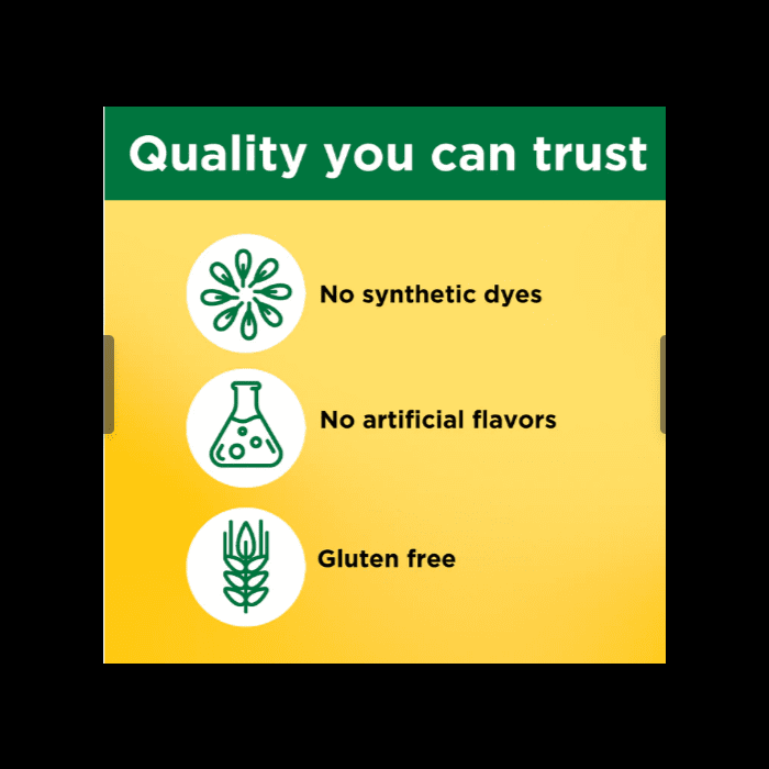 - Gluten-free with no artificial flavors or synthetic dyes
