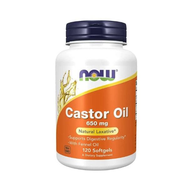 NOW Castor Oil 650mg Natural Laxative Digestive Supplement –120 Softgels