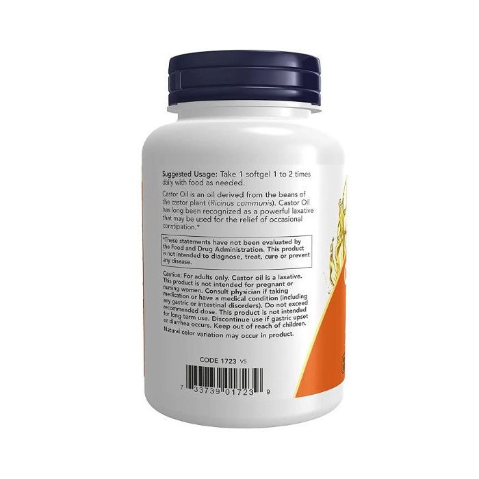 | NOW Foods | Castor Oil 650mg Natural Laxative Digestive Supplement | 1 Softgel | Softgel Capsule | 120 Softgels |