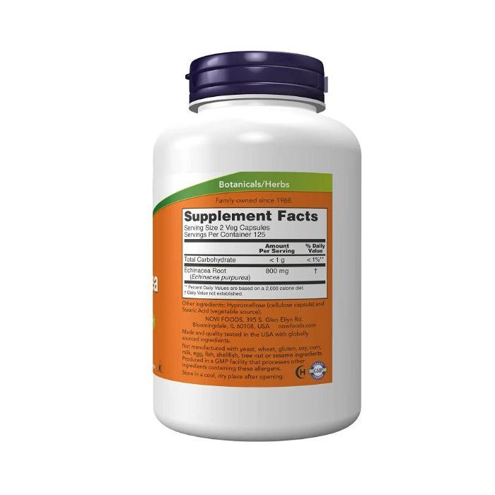 NOW Echinacea 400 mg provides pure echinacea root to support immune health. Vegetarian capsules, allergen-free, and GMP-certified for quality.