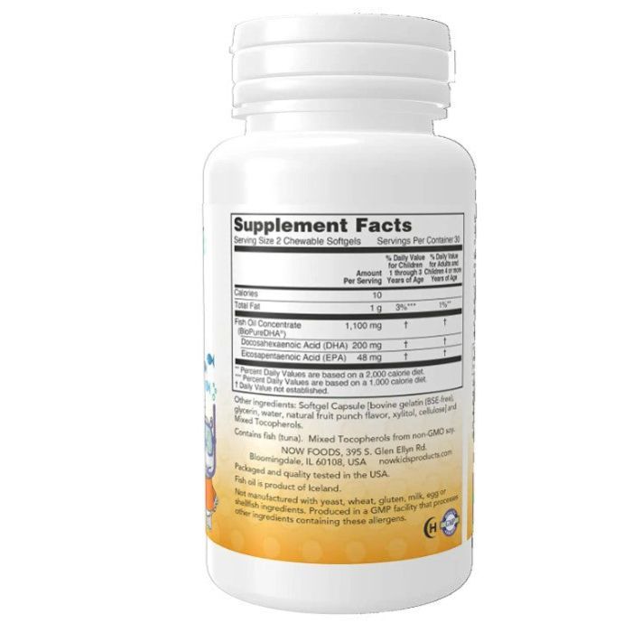 | NOW | Kids DHA Brain Health Support – Fruit Flavor | 2 Chewable Softgels | Softgel | 60 Softgels |