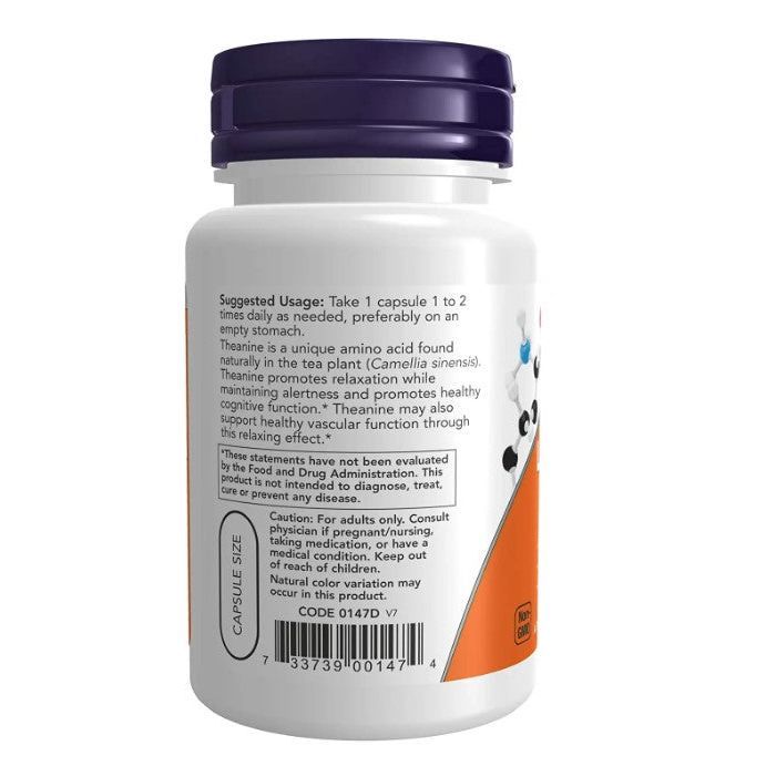 | NOW Foods | L-Theanine 200mg with Inositol | 1 Veg Capsule | Capsules | 60 Veg Capsules |