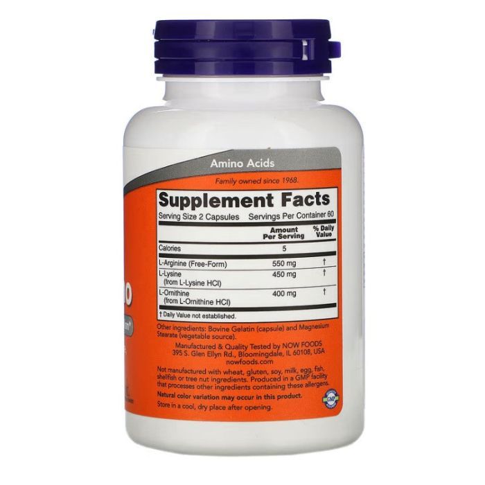 NOW Tri-Amino 120 Capsules – L-Arginine, L-Lysine & L-Ornithine
