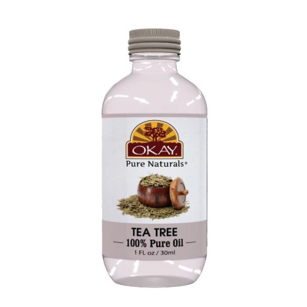 OKAY Pure Naturals Pure Tea Tree Oil 1oz (30ml) is a natural antiseptic essential oil derived from the Melaleuca Alternifolia tree. Ideal for treating acne, dandruff, and minor skin irritations.