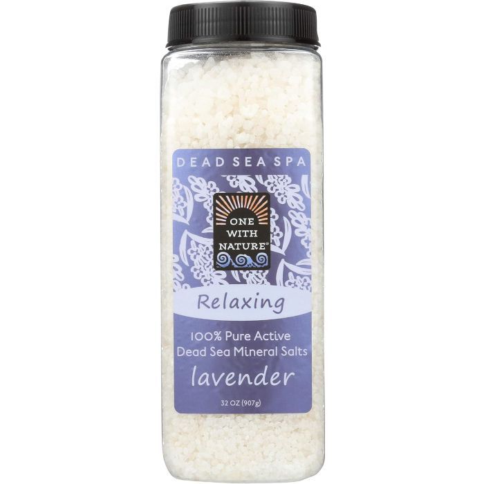 Add 1/4 cup of One With Nature Pure Dead Sea Mineral Bath Salts 32 oz with Essential Oils to warm bath water and soak for 15-20 minutes to experience skin revitalization and muscle relaxation.