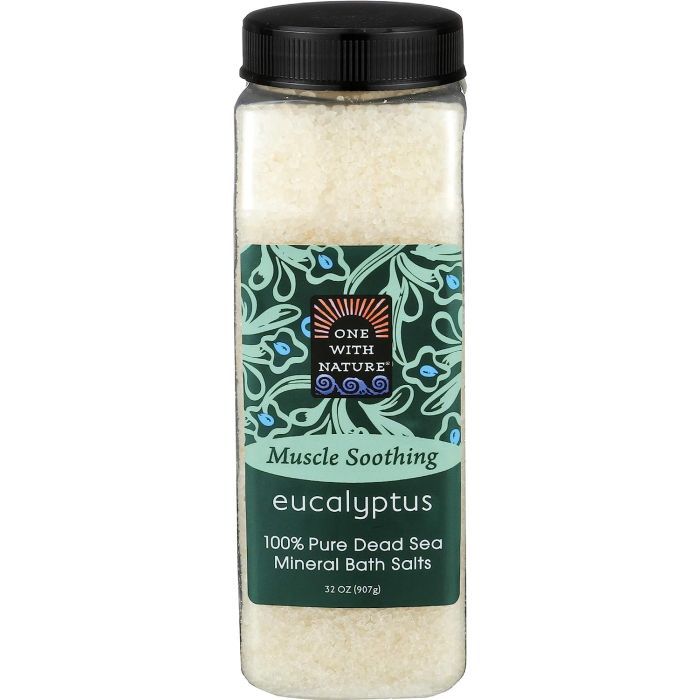 One With Nature Pure Dead Sea Mineral Bath Salts 32 oz with Essential Oils detoxify and hydrate skin while promoting relaxation with soothing lavender and eucalyptus aromas.