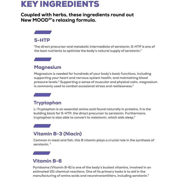 Onnit New Mood combines a blend of natural ingredients known to support mood and relaxation: