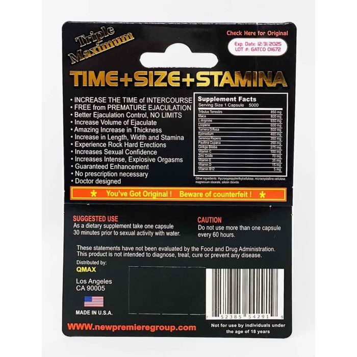 Take one capsule 30 minutes prior to sexual activity with water. Do not exceed more than one capsule every 60 hours. Avoid use if you have medical conditions such as heart problems or high blood pressure without consulting a physician. Not recommended for individuals under 18 years old. Store in a cool, dry place.