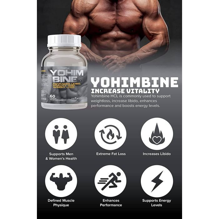 Prometheuz Yohimbine Libido Booster 60 Capsules is a premium-grade supplement designed to support fat loss, boost athletic performance, and enhance sexual wellness. Featuring Yohimbine HCL, a natural alkaloid derived from West African Yohimbe bark, this formula helps reduce fat mass, improve energy and endurance, and promote healthy libido and vitality in both men and women.