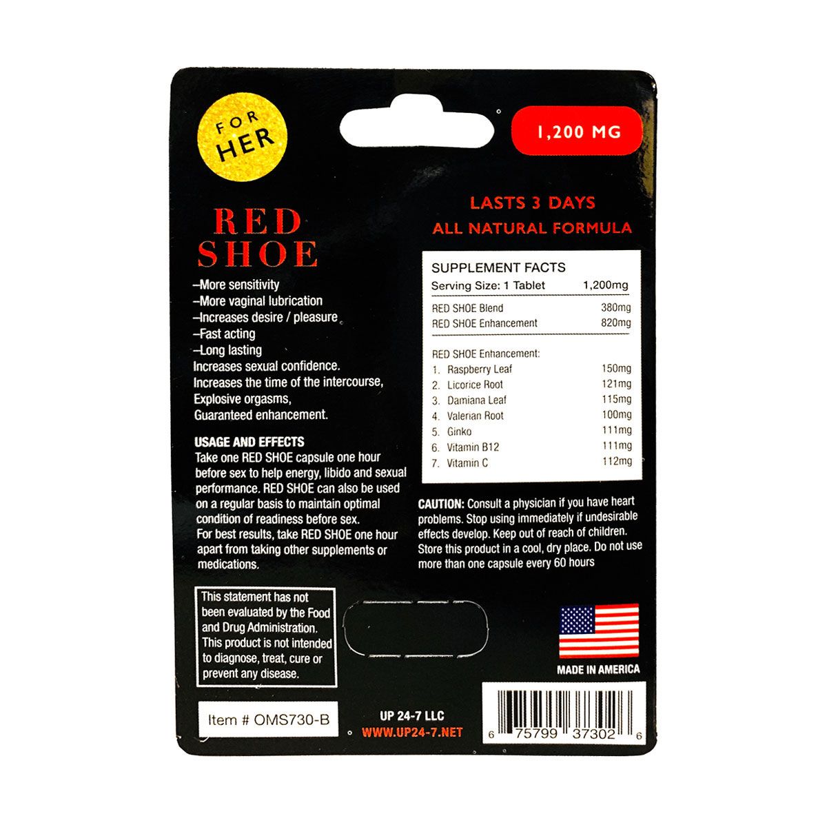 These statements and product claims for Red Shoe Female Sexual Enhancer Pill Last 3-Days have not been assessed by the Food and Drug Administration. This product is not intended for the diagnosis, treatment, cure, or prevention of any disease.