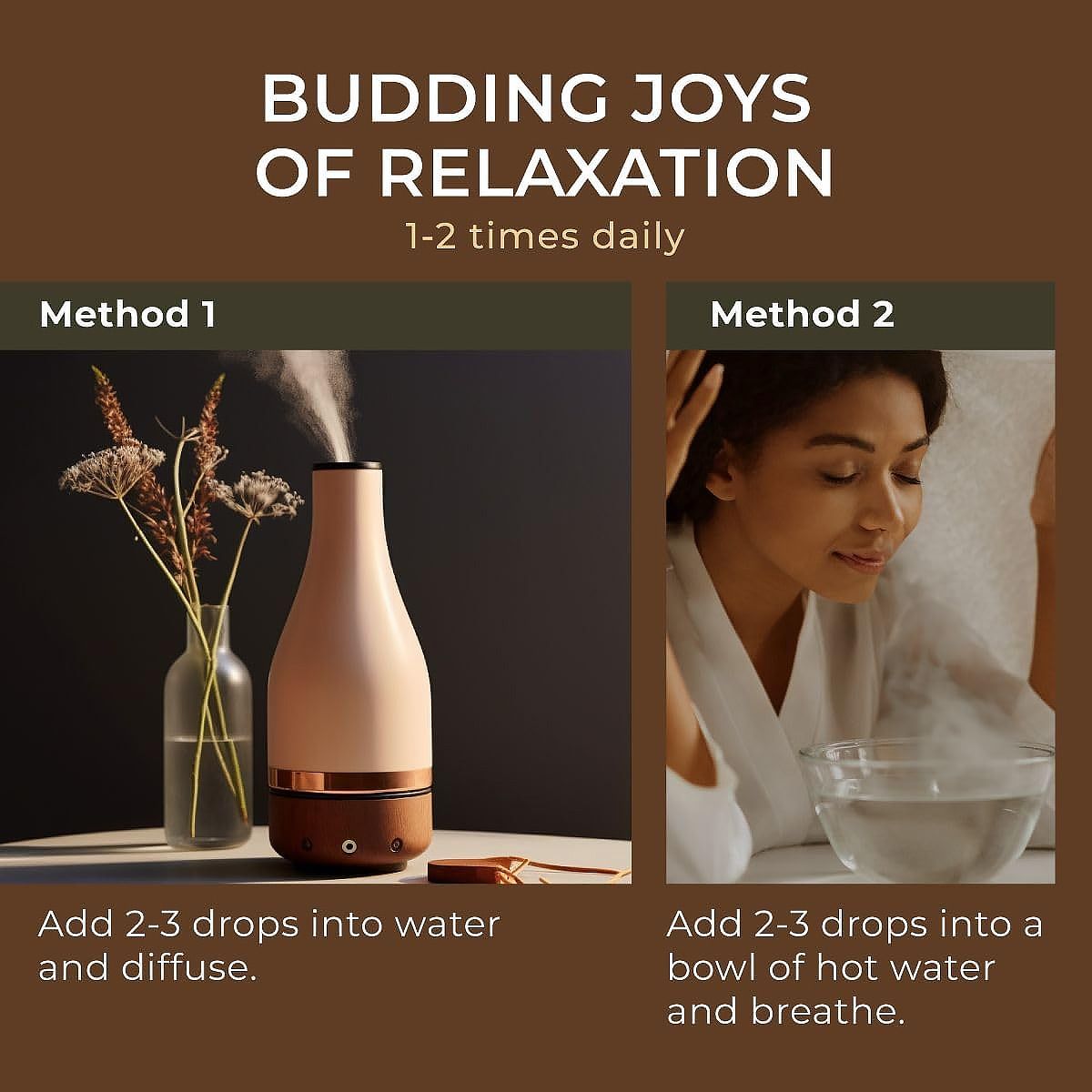 Unleash the versatility of Roman Chamomile Oil in your daily rituals. Blend 2-3 drops with carrier oils like jojoba or almond to create a relaxing massage oil that eases tension behind your neck. For radiant, soothed skin, combine with bergamot oil, applying the mixture to nourish and calm. Elevate your ambiance by diffusing this oil, crafting a sweet, aromatic haven that enhances your living space.
