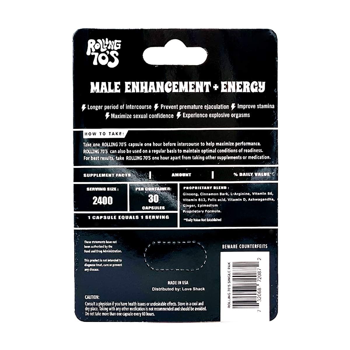 The Rolling 70s Men Sexual Enhancer Pill and its claims have not been assessed by the Food and Drug Administration. This product is not designed to diagnose, treat, cure, or prevent any diseases.