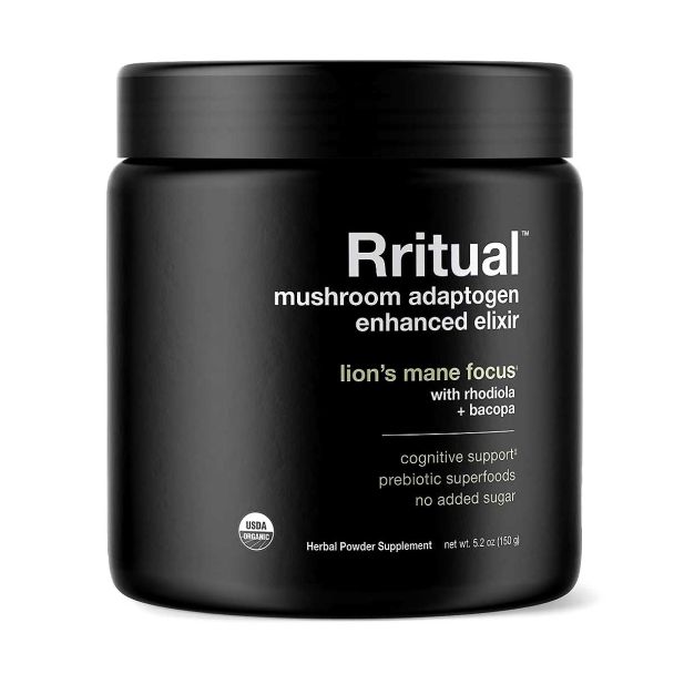 - Rritual's elixir is a synergy of Lion's Mane, Rhodiola, Bacopa, and an immune-supportive blend of chaga, astragalus, schisandra, and eleuthero root. This organic vegan powder is a powerhouse of prebiotics and adaptogens, promoting wellness with every scoop.