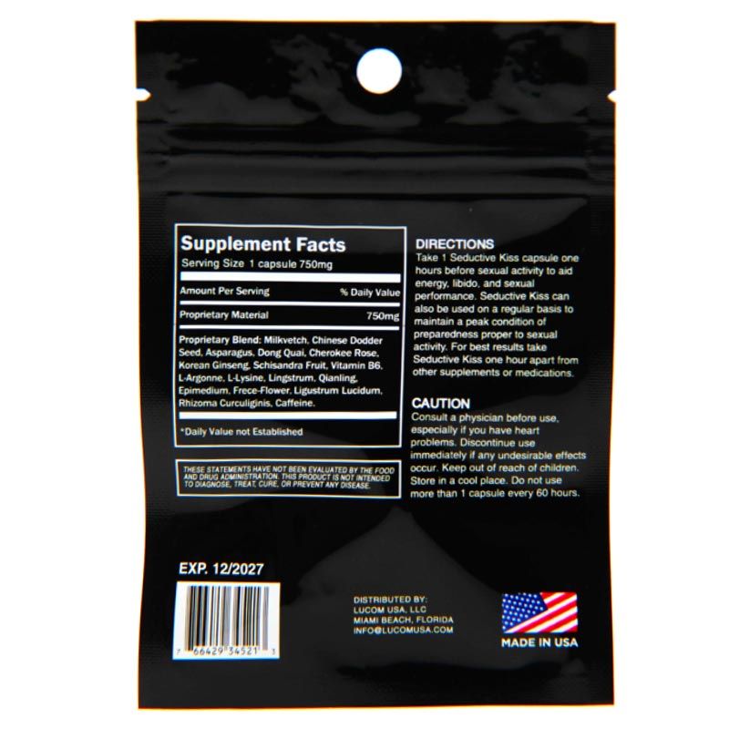 - Consult a medical professional before using the Seductive Kiss Tablet, particularly if you have cardiovascular conditions, hypertension, or other health concerns.