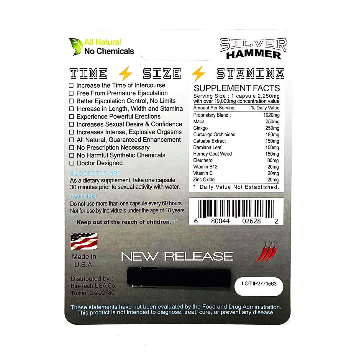 The Silver Hammer XXX Male Enhancement 13-Day Pill, its statements, and claims have not been evaluated by the Food and Drug Administration. This product is not intended to diagnose, treat, cure, or prevent any disease.