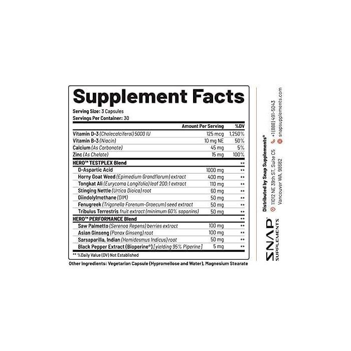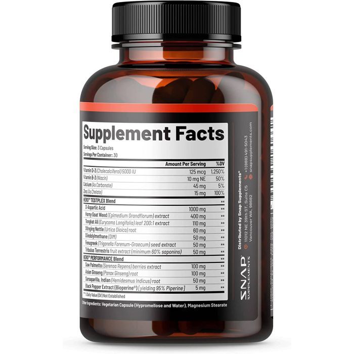 The Snap Men Testosterone Booster combines potent herbal extracts and essential vitamins that work synergistically to promote male health: