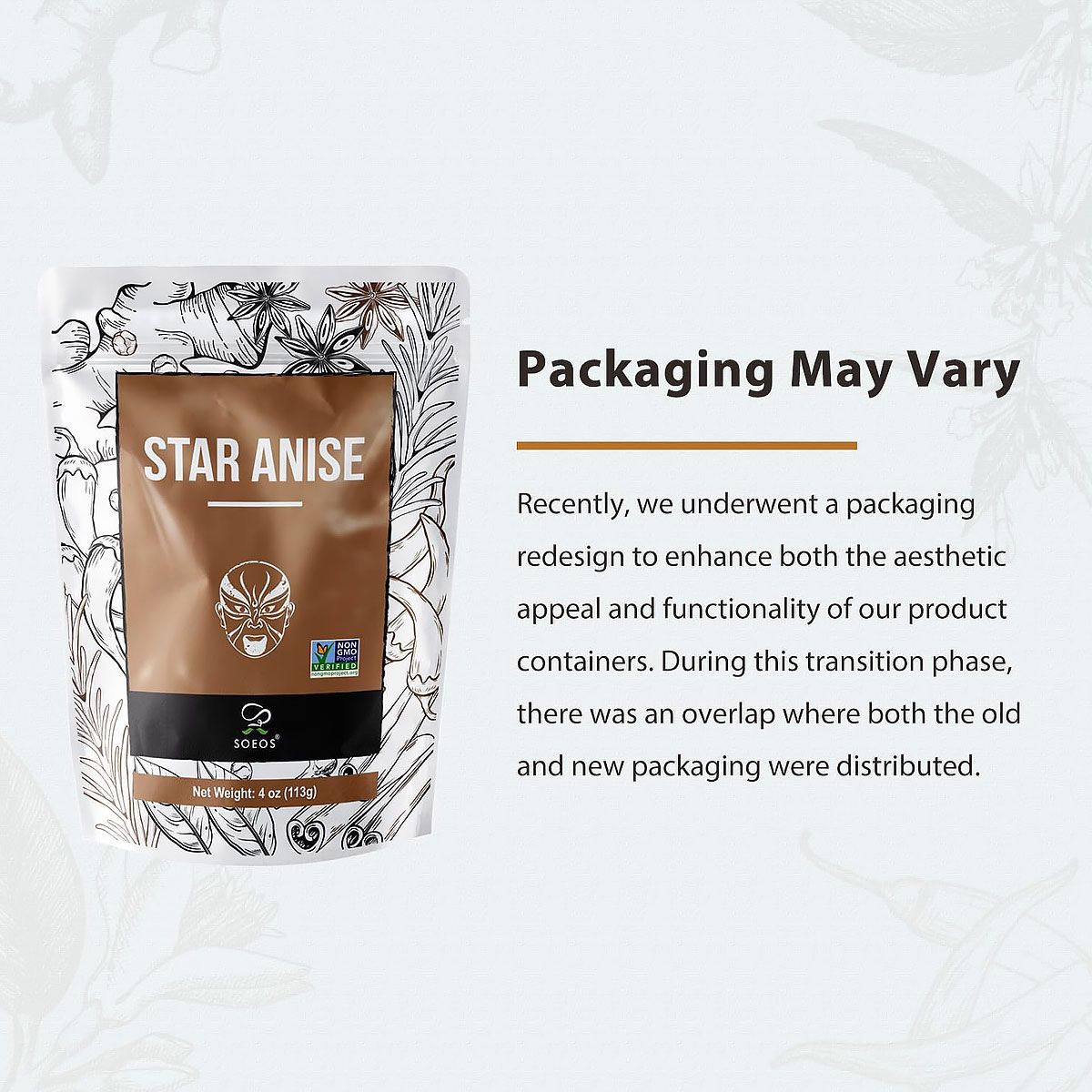 Pure Soeos Premium Star Anise Pods, Non-GMO and freshly packed.