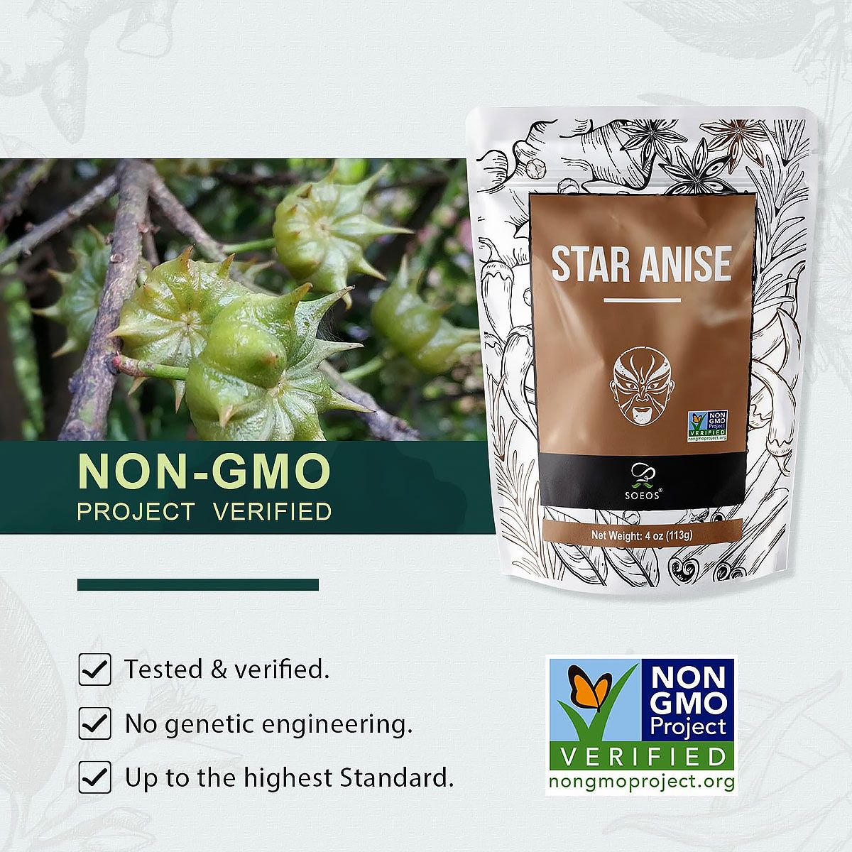 A: Yes, Soeos Premium Star Anise Pods are Non-GMO Verified and contain no additives.