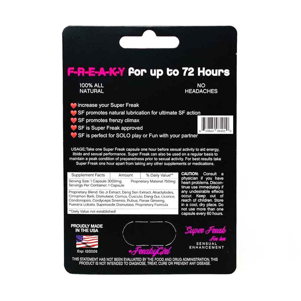 - "Super Freak Female Sensual Enhancer has been a game-changer for my intimate life. The arousal and pleasure I've experienced are unparalleled, lasting through the weekend." - Jasmine P.