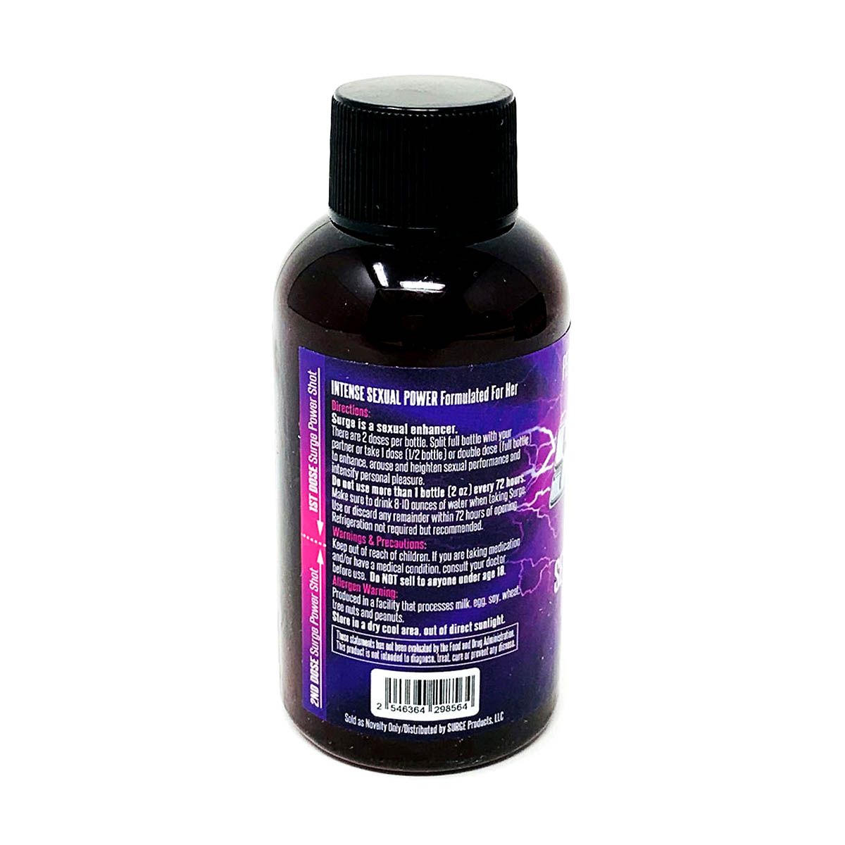 Take one bottle of SurgeHer Women Sexual Pleasure Power Shot approximately one hour before sexual activity. Do not exceed two bottles within a 24-hour period. For optimal absorption, use on a light stomach and drink plenty of water.