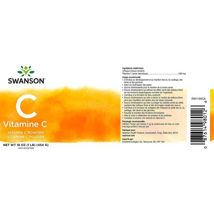 | Swanson | Vitamin C Powder Immune System Support | 1 g (1 scoop) | Powder | 16 oz (454 g) |