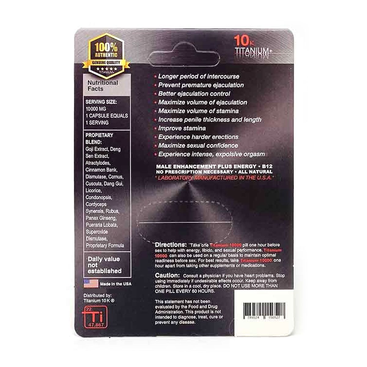 | Titanium 10K | Max Strength Male Enhancement Pill | 1 Serving (10,000 mg) | Capsule | 1 Capsule |