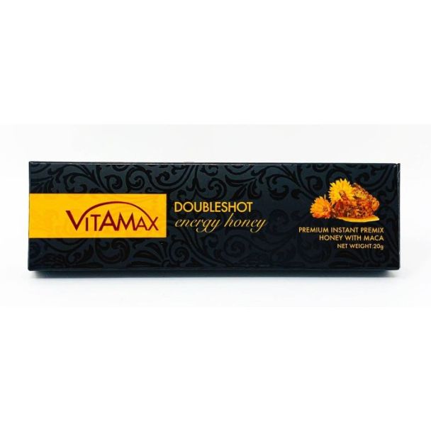 Vitamax Double Shot Energy Honey Male Enhancement Sachet boosts male libido, stamina, and energy naturally. Enriched with honey, ginseng, and L-Arginine for fast-acting effects. GMP certified and easy to use. Perfect for quick, effective intimate support. Take one sachet 30-60 minutes before intimacy.