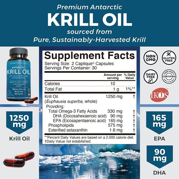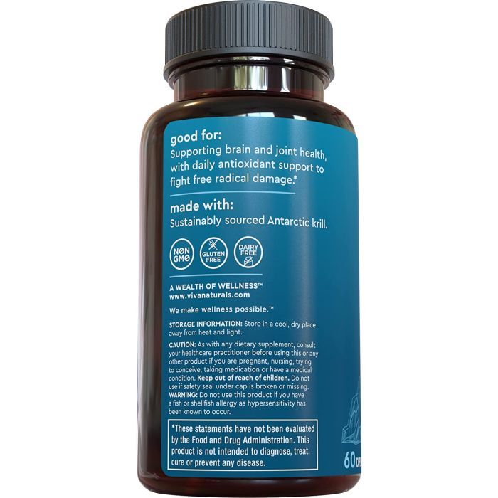 Boost heart, brain, and joint health with Viva Naturals Antarctic Krill Oil 1250mg. Sustainably harvested, rich in omega-3s, phospholipids, and astaxanthin for powerful antioxidant support. Non-GMO, gluten-free, and third-party tested for purity and quality.