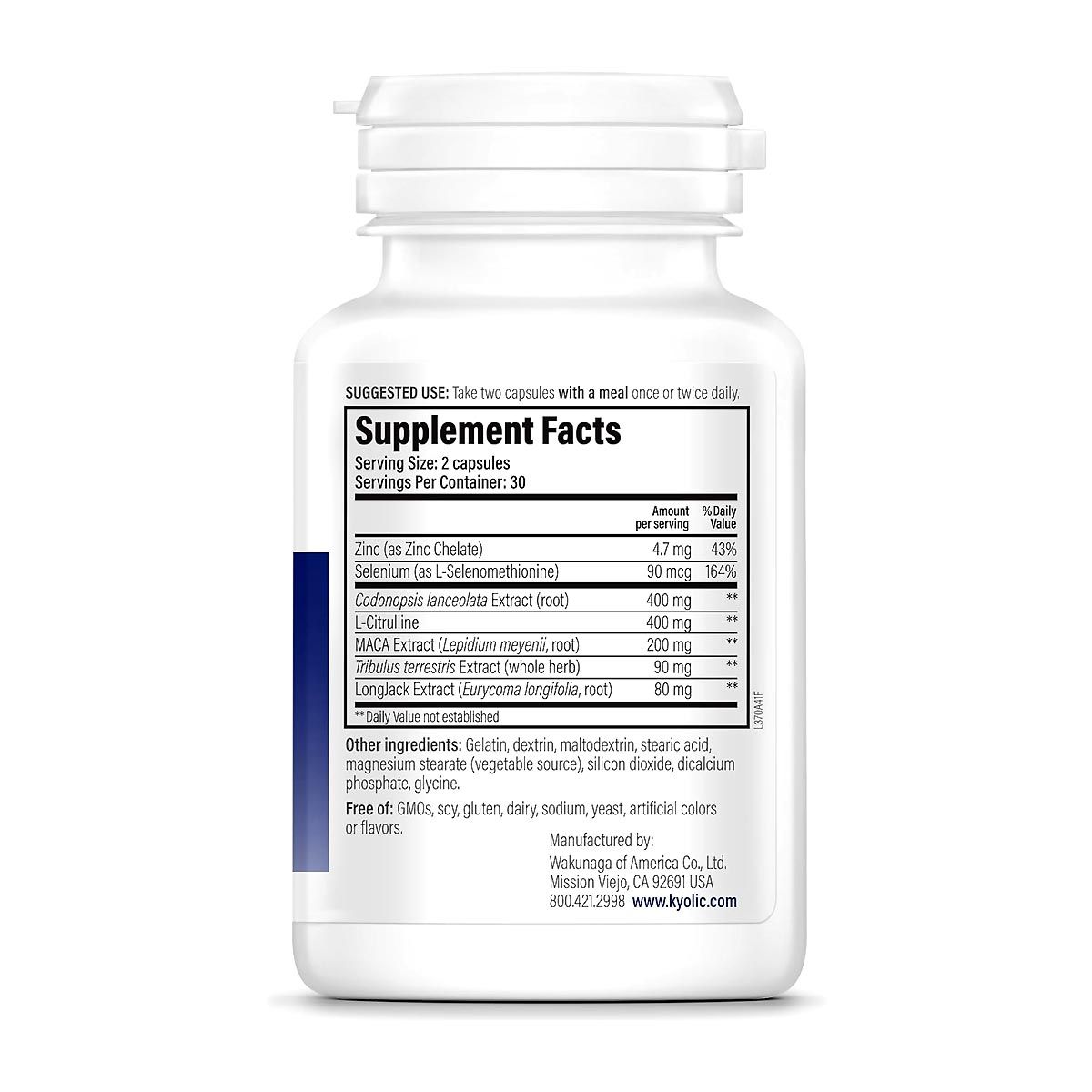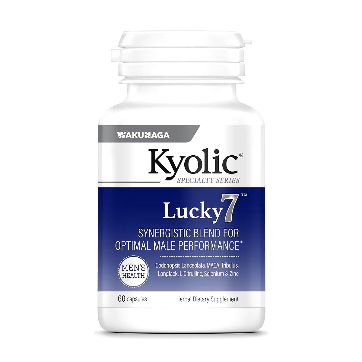 Wakunaga Kyolic Lucky 7 is a premium herbal dietary supplement designed to support optimal male performance and overall vitality. This synergistic blend combines 7 powerful ingredients including Codonopsis root, Maca extract, Tribulus, LongJack, L-Citrulline, Zinc, and Selenium.