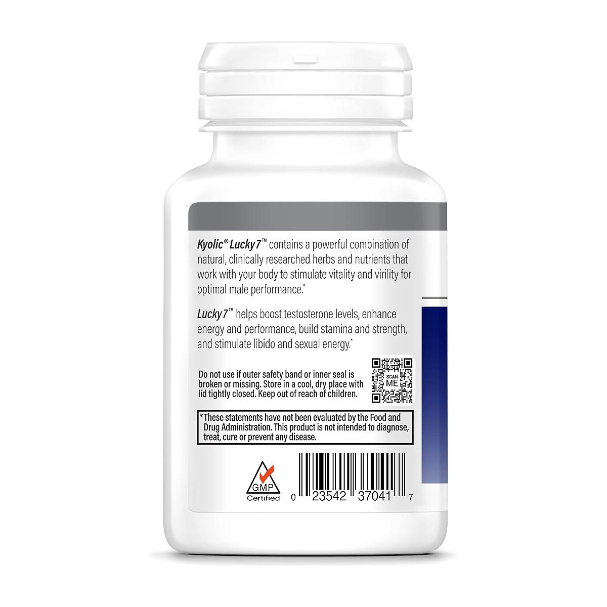 Kyolic Lucky 7 is a synergistic male herbal blend designed to support stamina, circulation, and performance. Featuring Maca, Tribulus, and LongJack for energy and reproductive health. With Zinc and Selenium to boost hormones and immunity, it’s a complete men’s vitality formula.