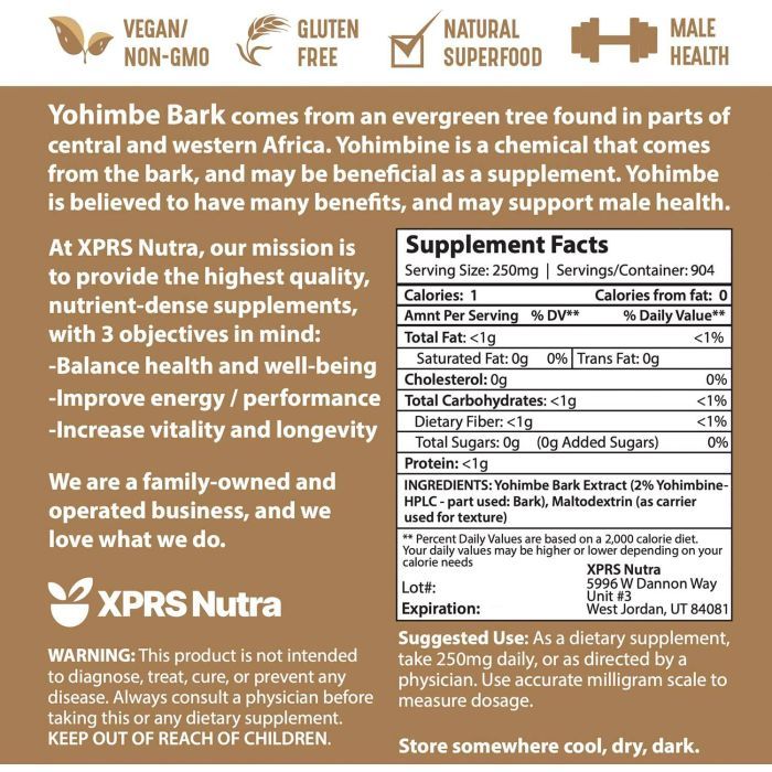 Vegan Gluten Free Supplement Xprs Nutra Yohimbe Bark Extract Powder 8 Oz