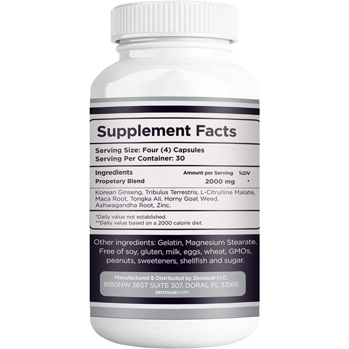 Featuring potent ingredients such as Maca Root, Tribulus Terrestris, L-Citrulline Malate, Ashwagandha Root, Korean Ginseng, Tongkat Ali, and Horny Goat Weed, Zenzsual Libizenzs Men Enhancer Booster supports improved blood flow, reduced stress, enhanced muscle mass, and a strengthened immune system.